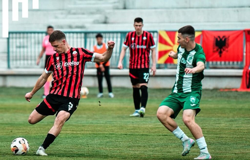 Mysafirët kaluan të parët në epërsi në minutën e 35-të, kur Spirovski shfrytëzoi një rast brenda zonës dhe dërgoi topin në rrjetë për 0:1.